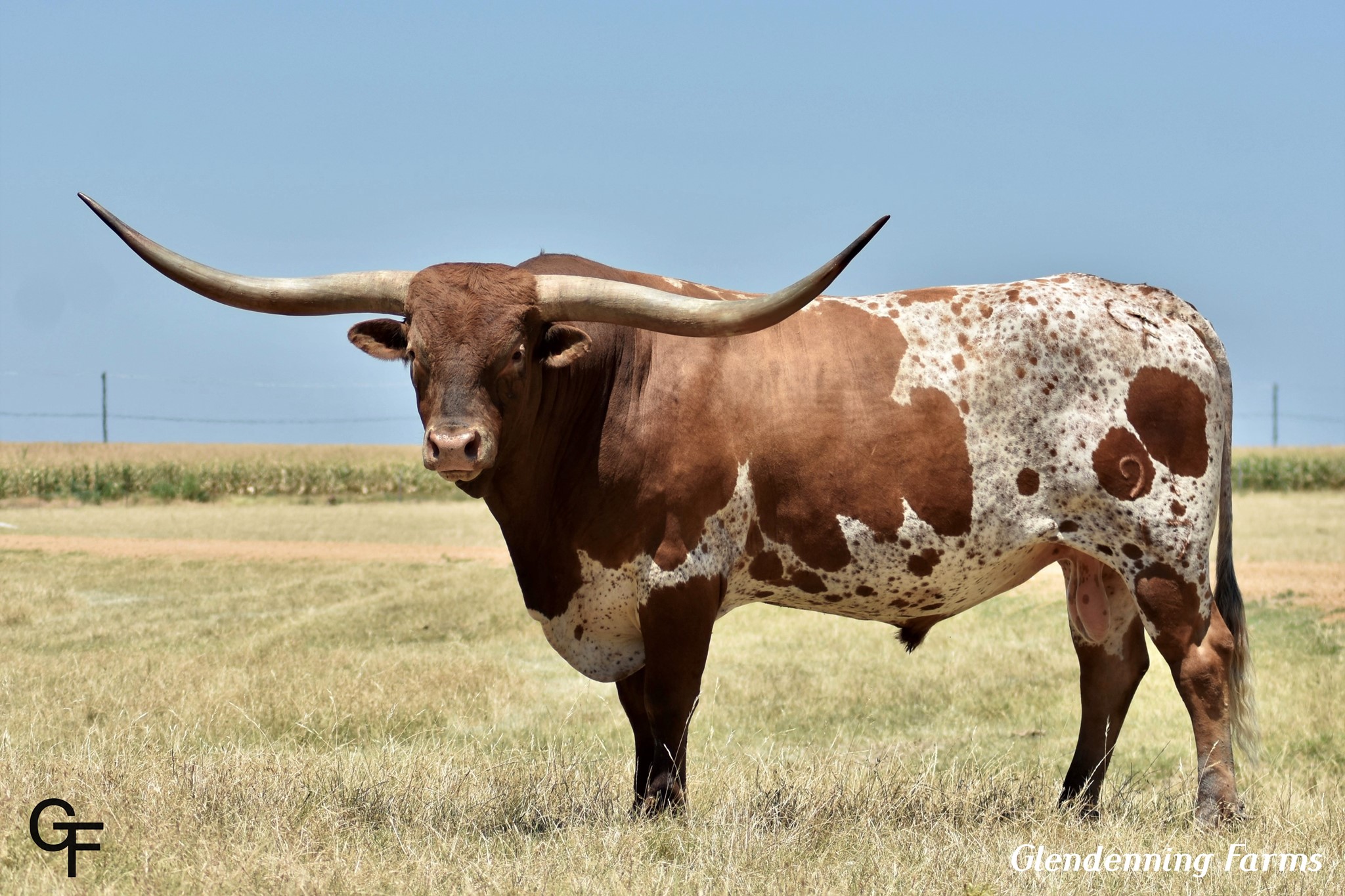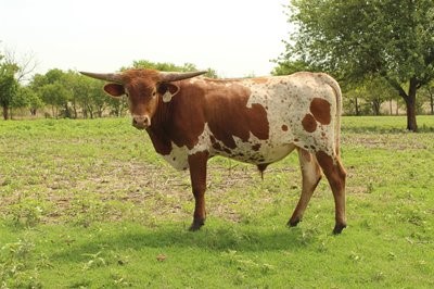 Son of the great 90"TTT Drag Iron and out of the over 85"TTT daughter of JP Rio Grande. He is colorful, has excellent disposition, long, tall, colorful, and built like a tank with perfect conformation. Stacked with the greatest genetics in the breed and will bring the best into any herd.