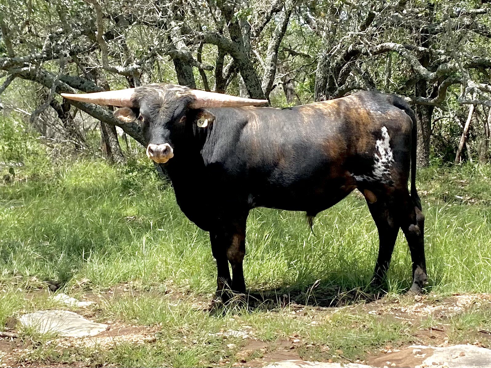 Braveheart's pedigree boasts an 87" ttt maternal grand dam (Rex's Penny), 90" ttt Drag Iron, 84" ttt twisty horned brindle paternal grand dam. and a 91" ttt paternal great grand dam.