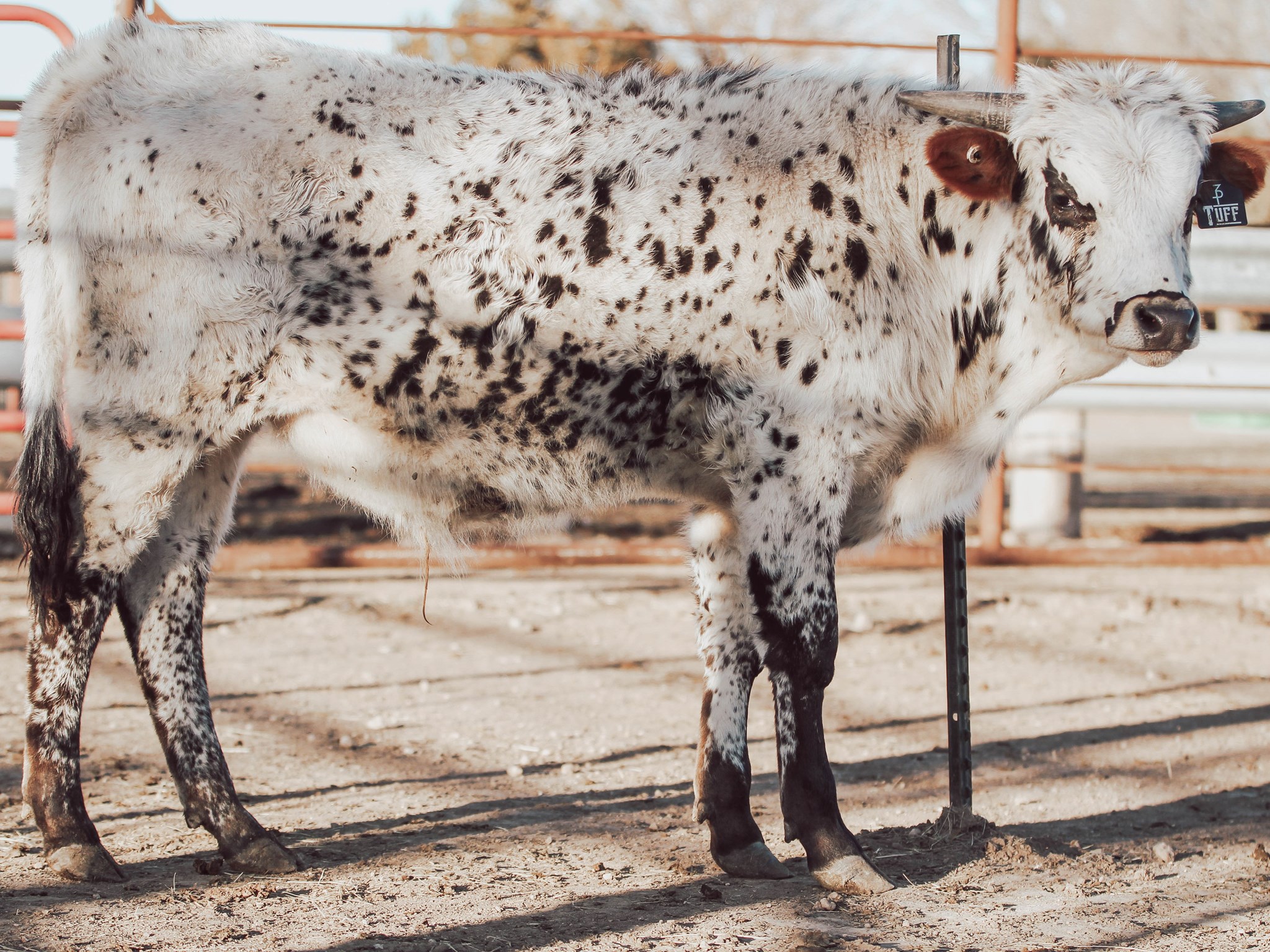 Amazing bull weighing 569 at weaning with almost 20" ttt horns. He's big bodied, a flashy parker and has a pedigree dreams are made of. His Dam is an almost 90" ttt daughter of Cowboy Tuff Chex and his sire is Spokesman known for color, size, and putting on the horn. He's bull material and will be ready to work this Spring.