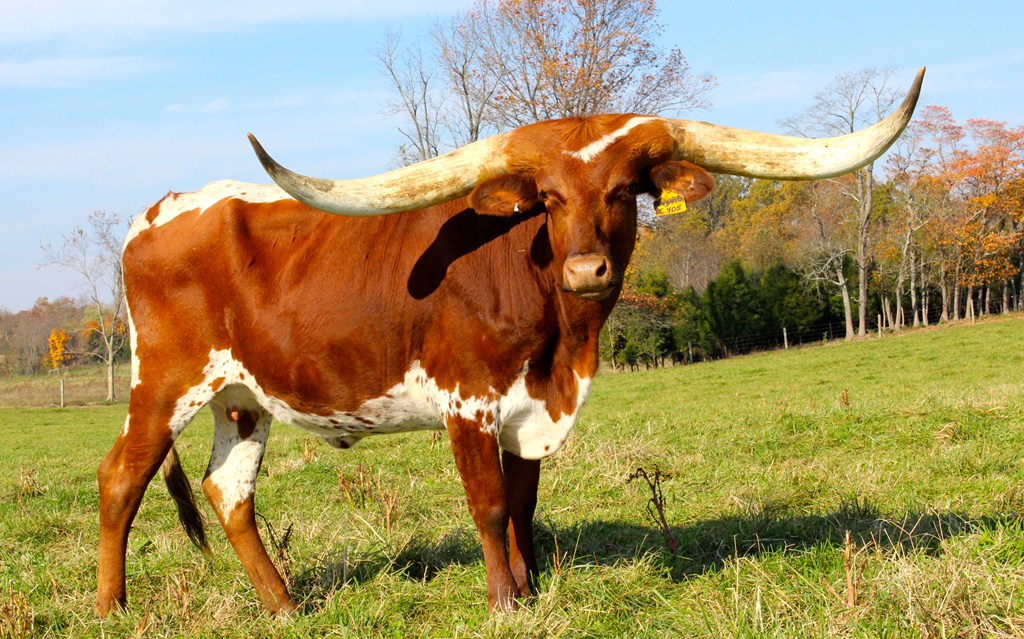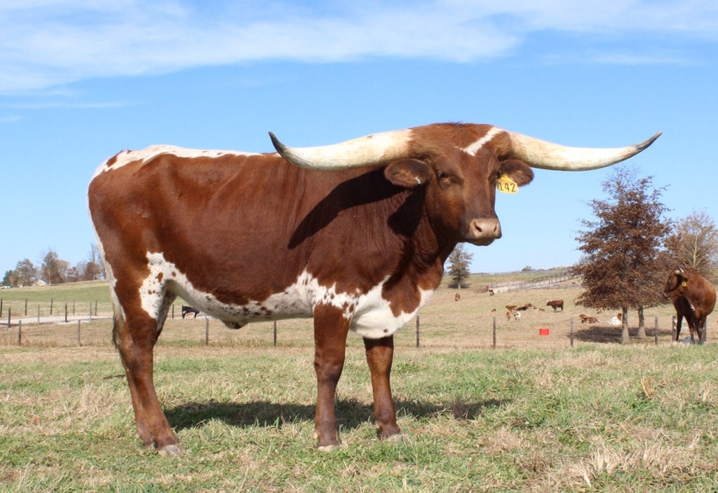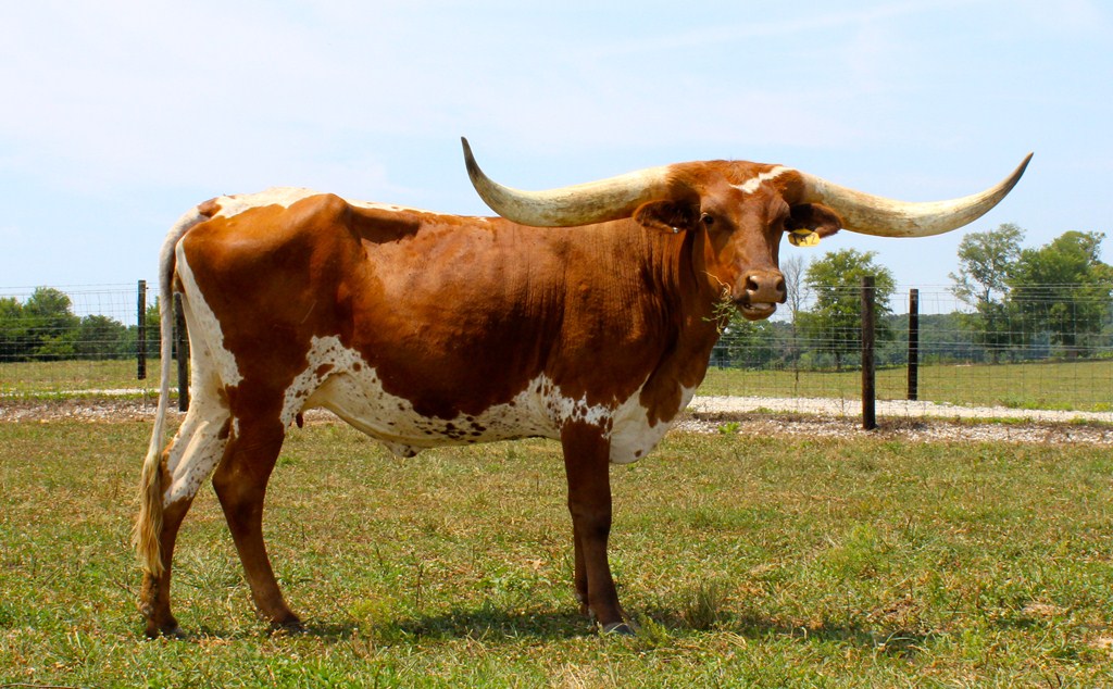 Cars wreck when viewing this cow. She has an amazing set of base on those horns and her conformation is perfect. We are breeding her to Winnie to continue that large frame and horn set. Just a stunning cow in the pasture.