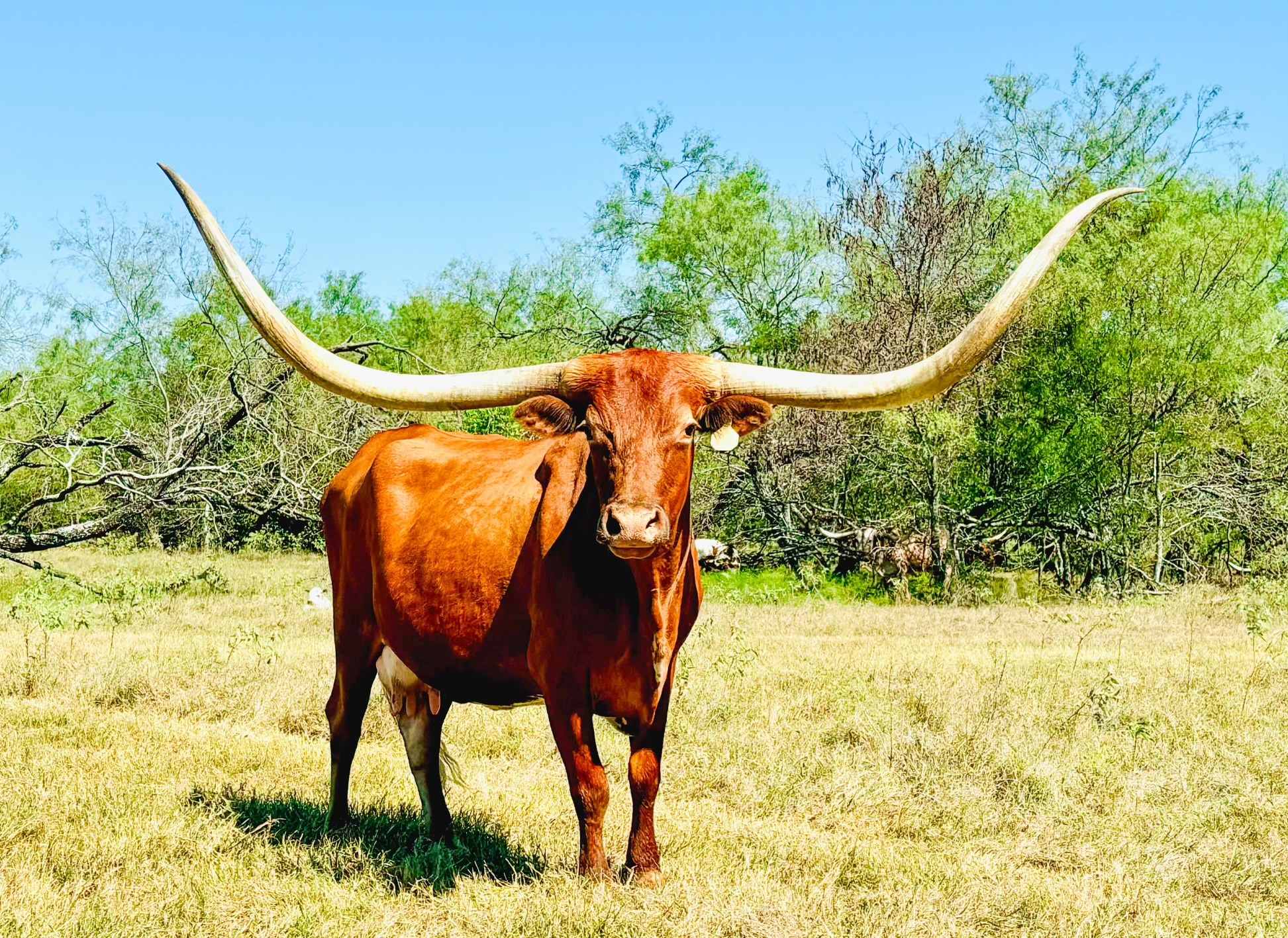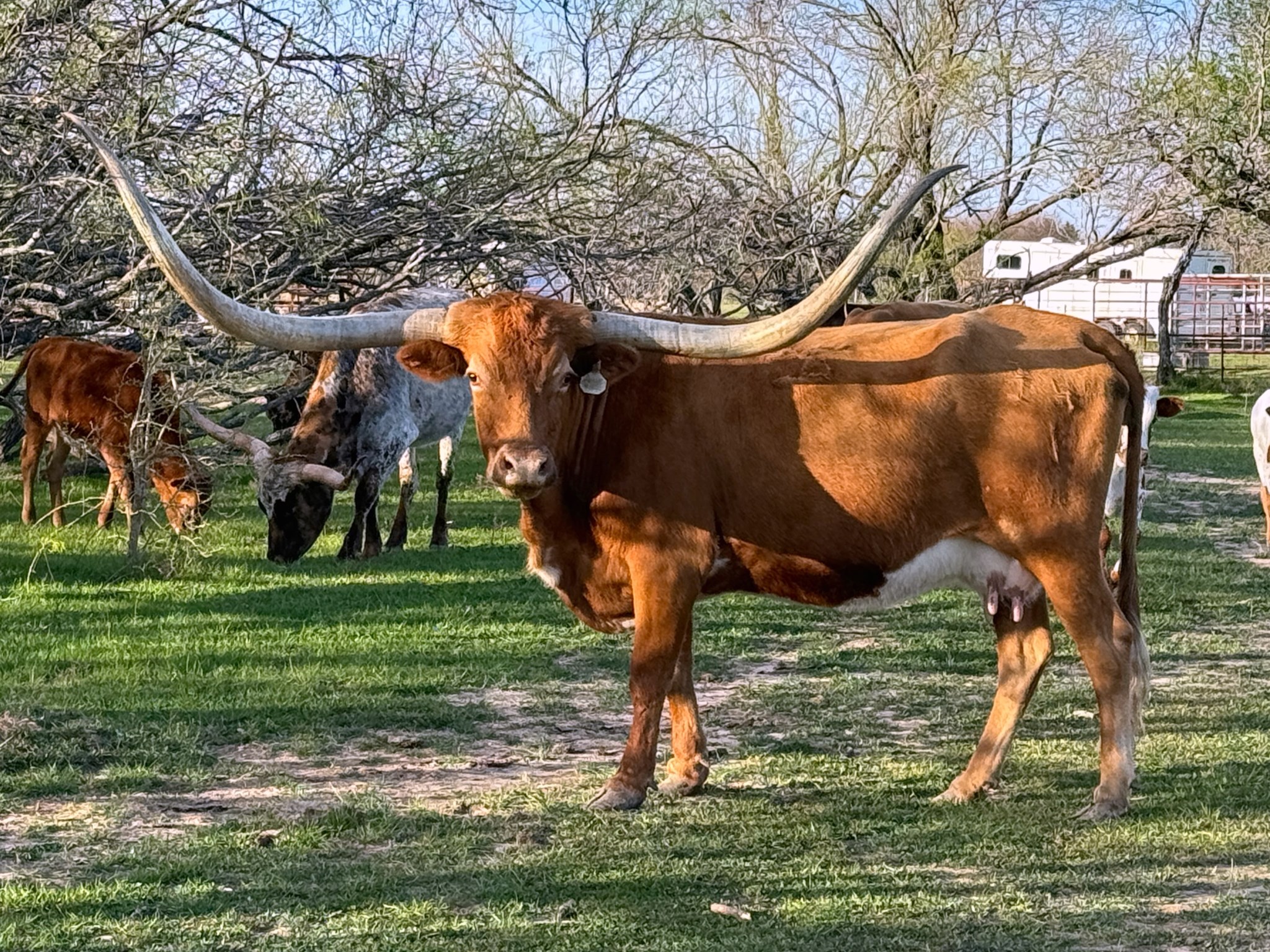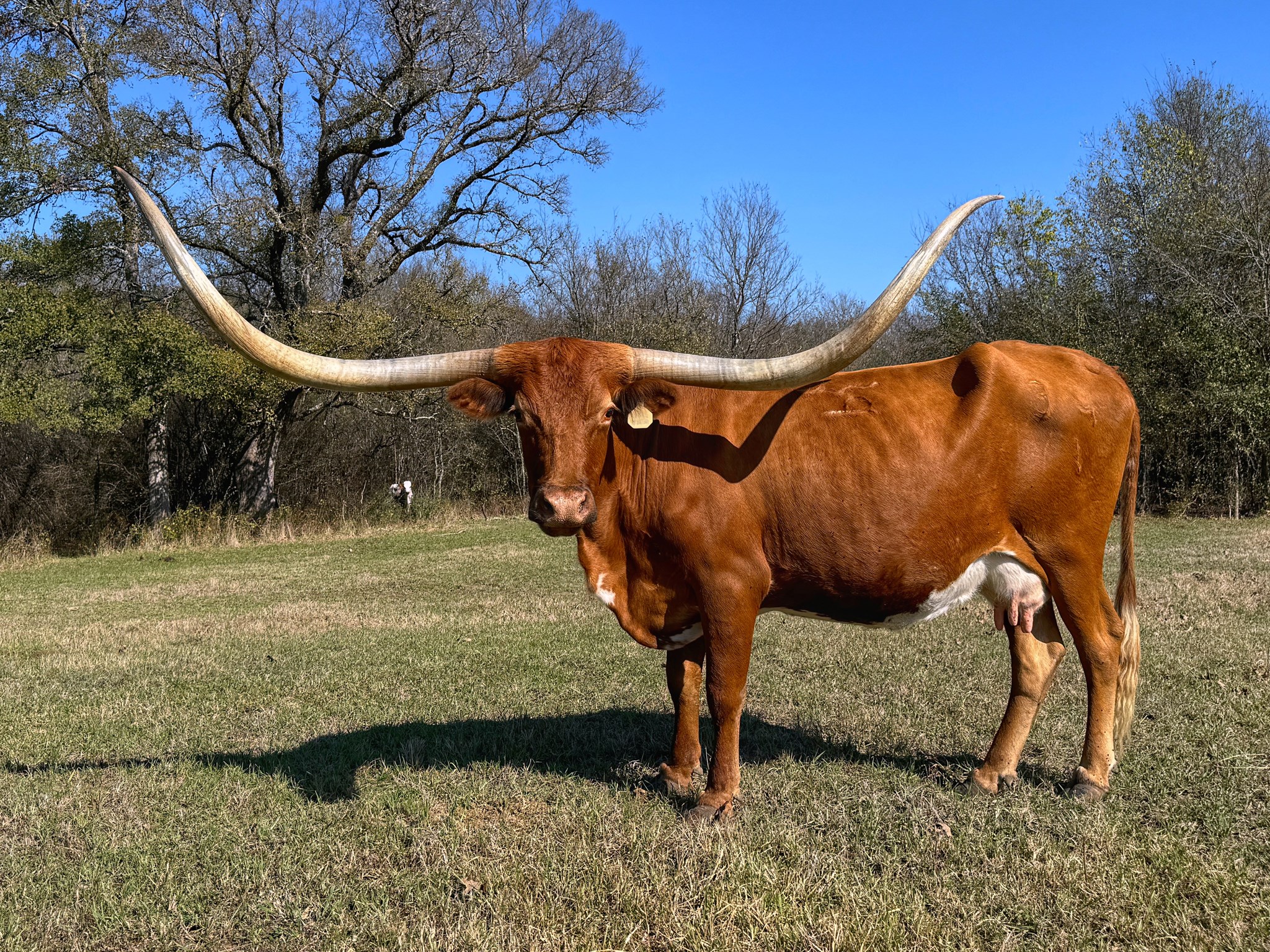 Rapt in Red not only has 87” ttt but over 110 of total horn. Her udder always has plenty of milk to raise big calves and she calves like clockwork each spring.