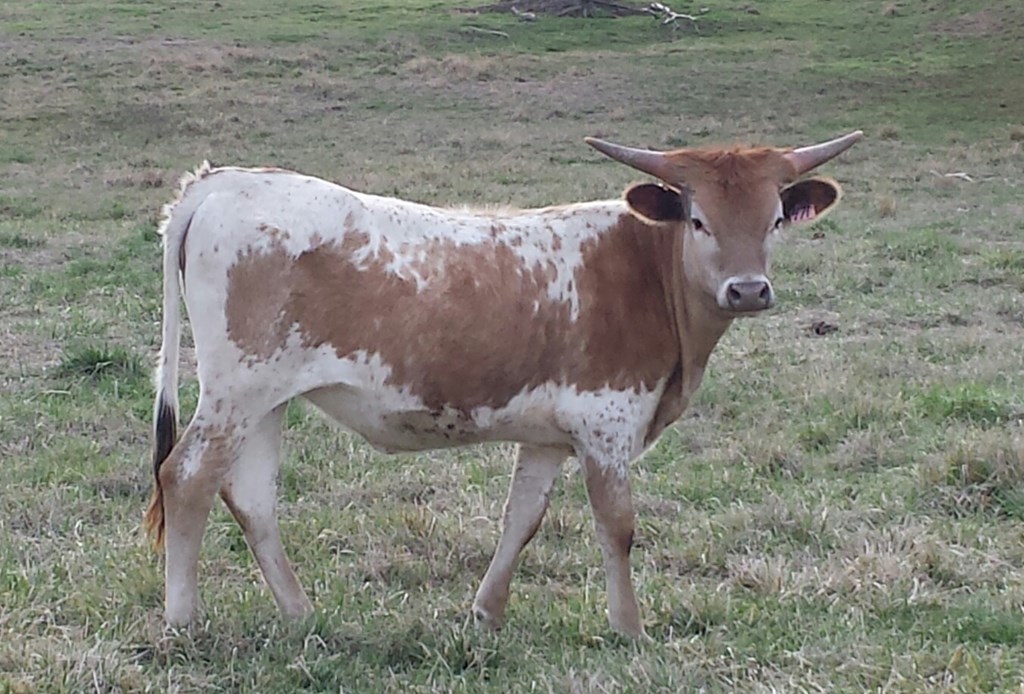 Bonita won first place at every futurity she was entered in. She’s a great mother who raises big calves. Just look at how she’s put together; long, deep, feminine. Look down her back, from her head to her tail to see just how far apart her hip bones are. And she always stays fleshy, even in the winter months. There's consistency in this maternal line. She is bred.